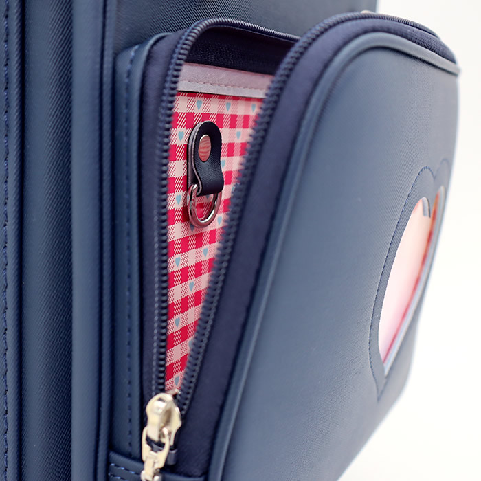 前面ポケット内DカンDカンは大事なものの取り付けに便利。内張りを施し更に丈夫な仕上がり。